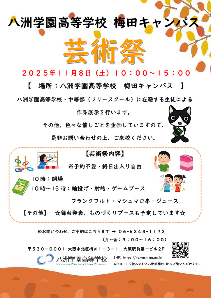 八洲学園高等学校・中等部(フリースクール)に在籍する生徒による作品展示を行います。